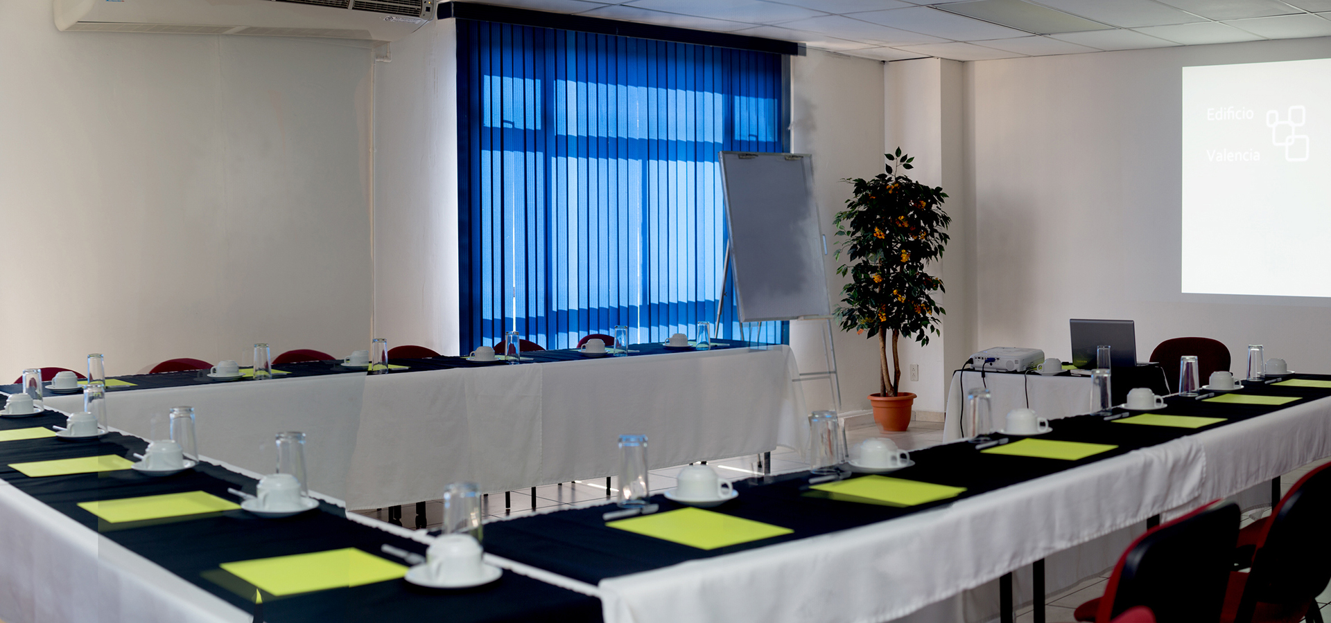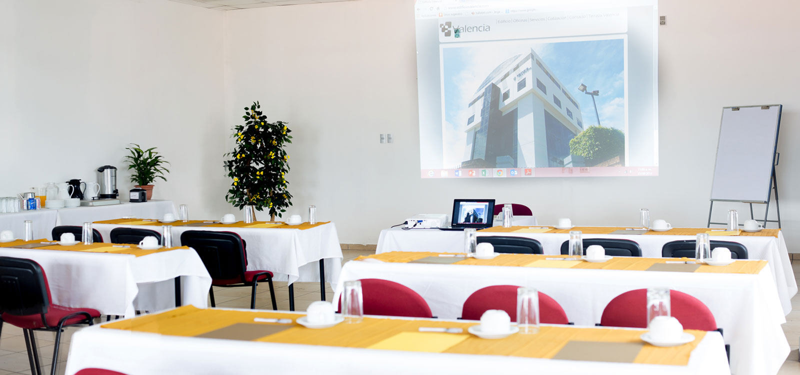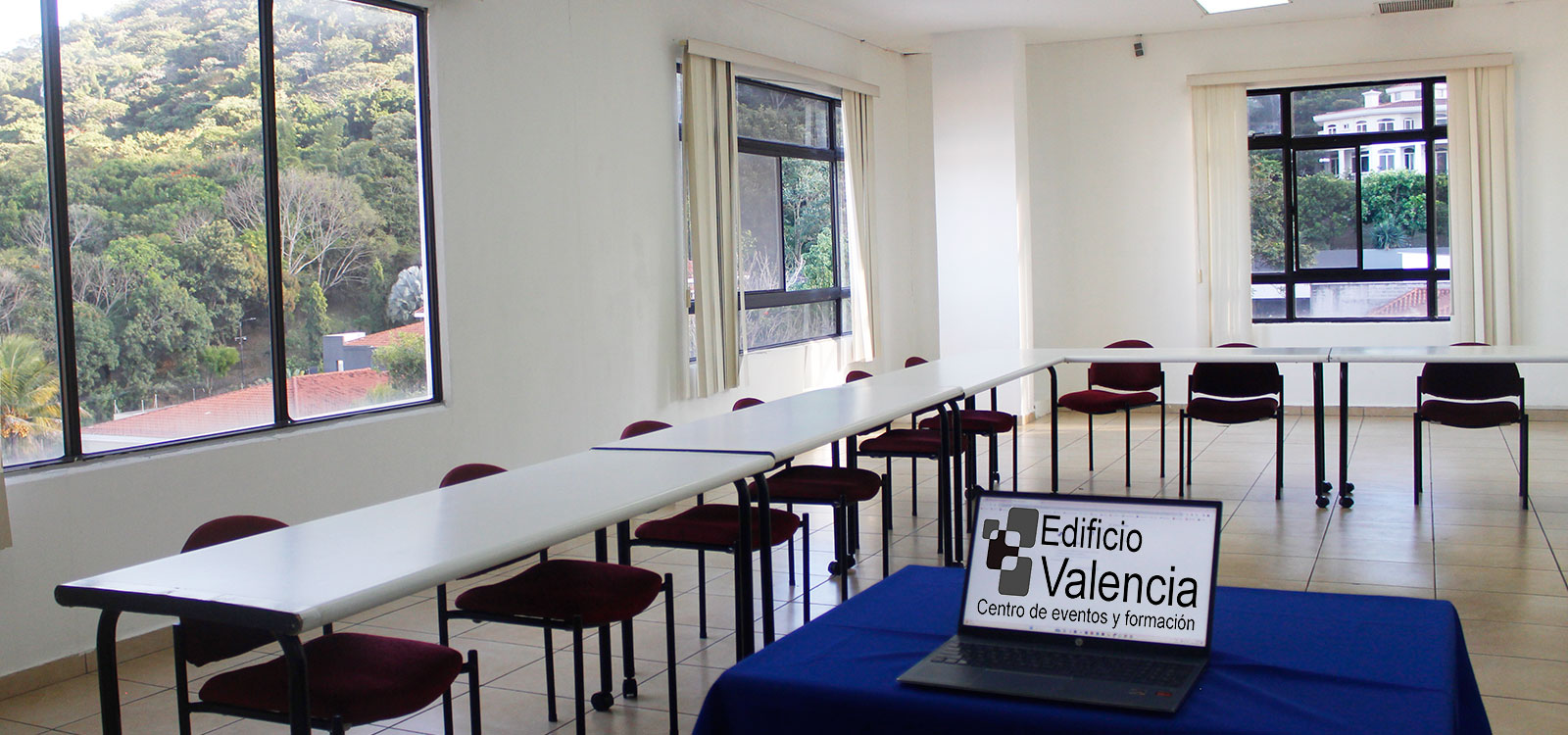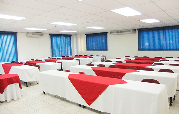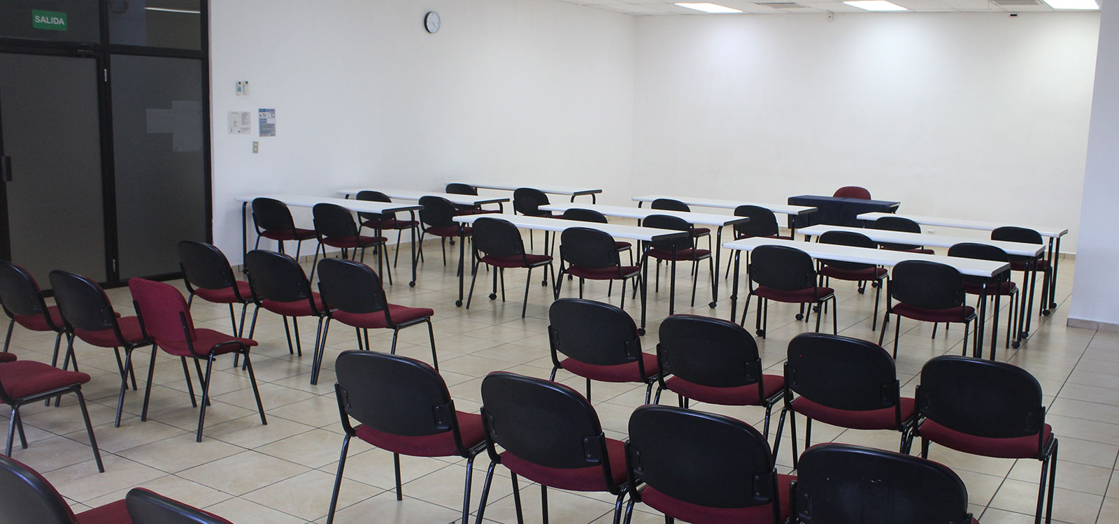 Salones con aire acondicionado y mobiliario para realizar capacitaciones y seminarios